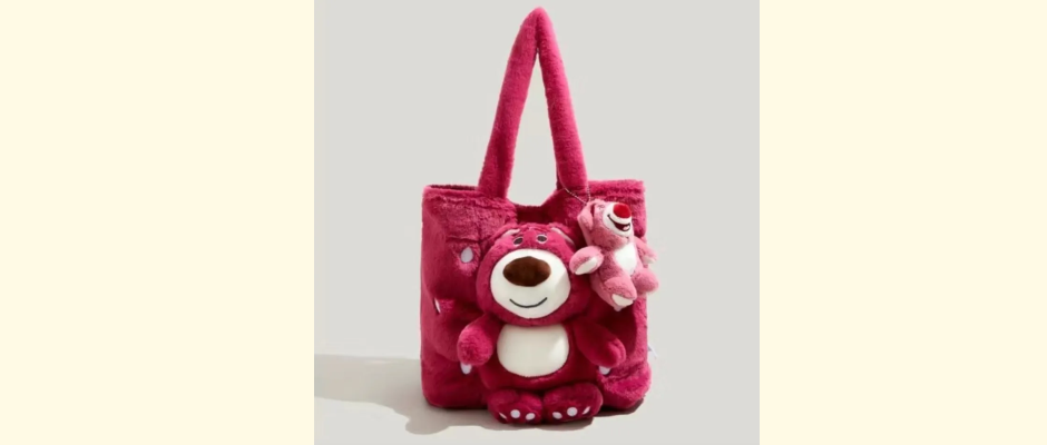 草莓熊毛绒创意包包,一只毛绒绒的小可爱绒毛超级滑溜柔软秋冬必备配色超亮眼回头率100大容量大容量装下水杯和笔记本 具有不长不短的袋子,单肩背时尚还不压身高包形饱满可爱就完了嫩妹必备轻便又时髦随意往身上一挎就能出门搭啥都出彩!