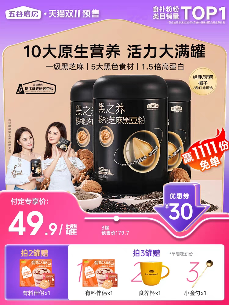五谷磨房黑之养黑芝麻糊无糖核桃芝麻黑豆粉营养早餐