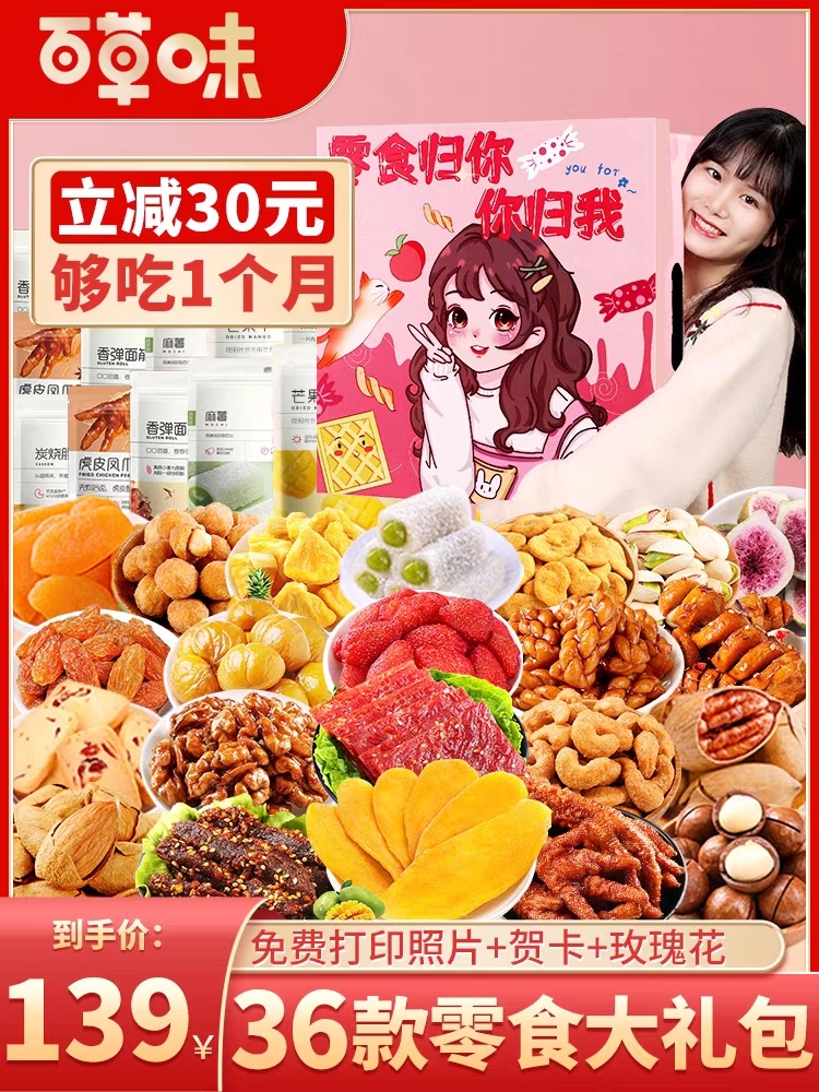 百草味零食大礼包整箱送女友礼物超大巨型网红休闲食品小吃大全