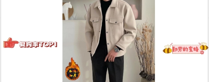 高级感毛呢外套男秋冬季2022新款韩版潮流百搭帅气休闲夹克男上衣