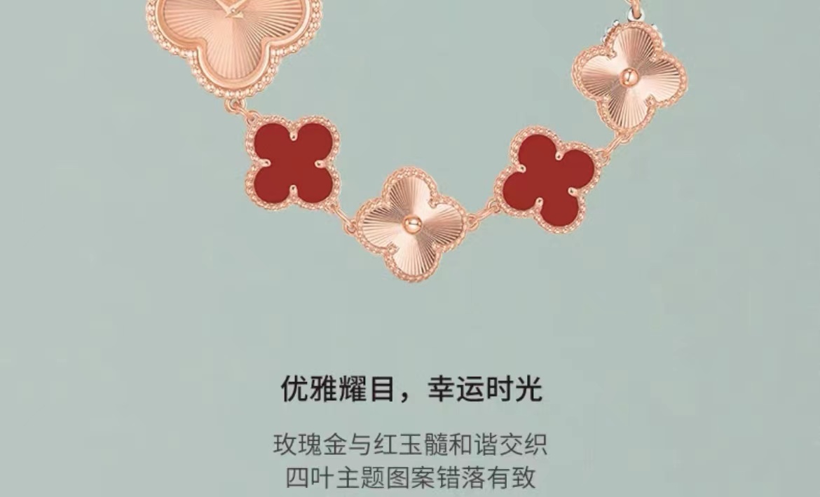 梵克雅宝官方旗舰店 四叶幸运Alhambra系列腕表 玫瑰金红玉髓手表