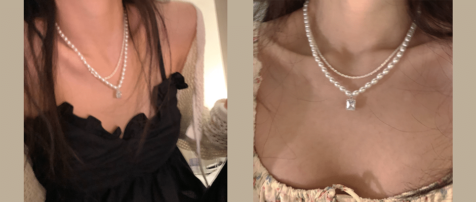 小众双层珍珠925银吊坠项链叠戴高级设计感简约气质女轻奢锁骨链