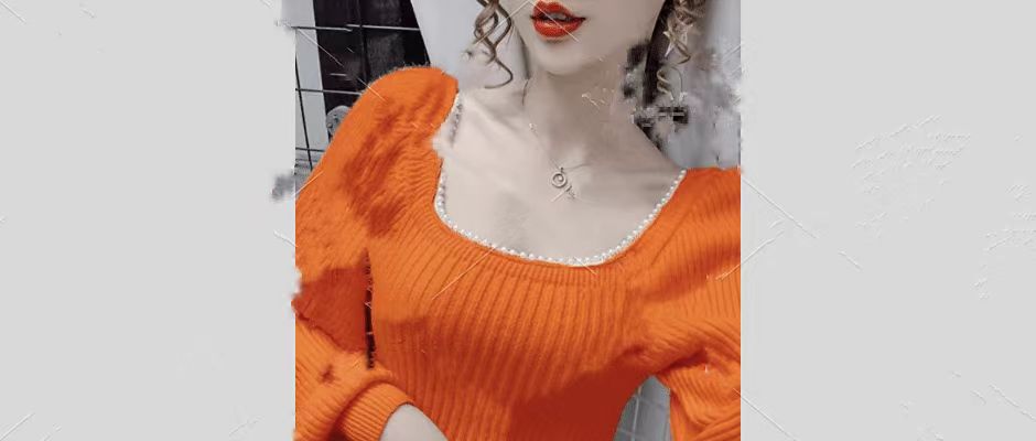 方领针织上衣女2023春秋天新款气质修身保暖网红高档毛衣打底衫