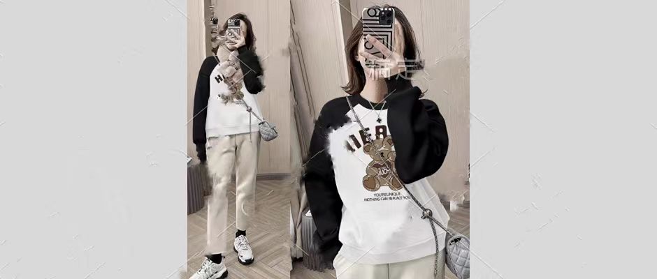 春秋美式插肩长袖卫衣女2023年新款小个子宽松休闲圆领上衣