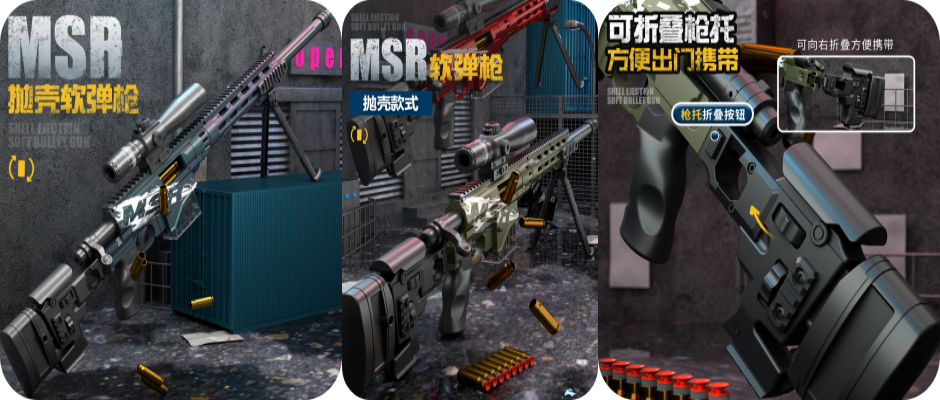 抛壳MSR狙击枪玩具仿真巴雷特阻击软弹枪吃鸡玩具枪解压玩具网红玩具新奇潮玩不卡弹可过安检颜值高方便携带可激发水蛋可diy自行装配套装互搭把玩性到顶的玩具