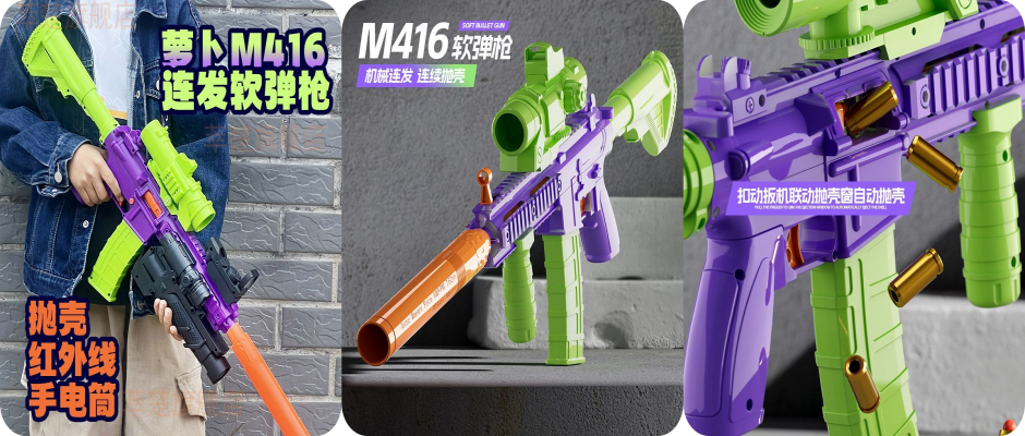 手动连发M416抛壳萝卜枪可发射软弹玩具枪模型玩具礼物反吹迷你解压玩具吃鸡玩具枪网红玩具新奇潮玩不卡弹可过安检颜值高方便携带可激发水蛋可diy自行装配套装互搭把玩性到顶的玩具