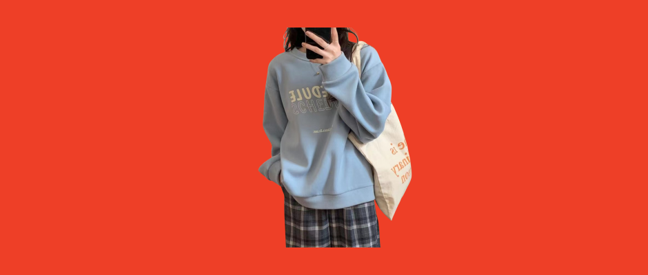 秋冬新款简约圆领卫衣女加绒港味超火时尚ins风潮外套薄款上衣服 蓝色 M