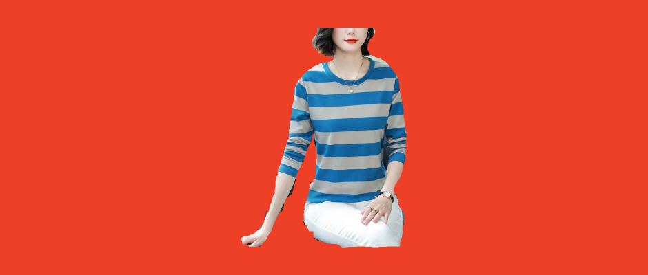 妈妈纯棉长袖t恤女2023春秋新款条纹圆领打底衫宽松大码遮肉上衣 蓝色 M