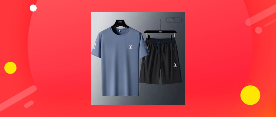 花花公子套装男夏季运动休闲跑步圆领速干短袖T恤短裤大码两件套装 黑+黑 XL
