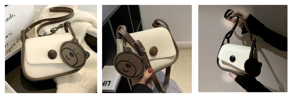秋冬简约包包2023新款包包女斜挎包女包韩系小挎包洋气百搭小熊包