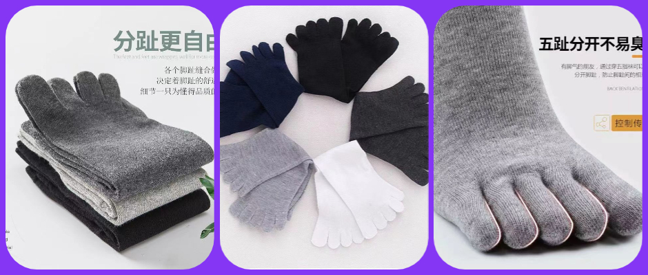 五指袜子男秋冬季防臭抗菌吸汗中筒松口分趾袜纯棉运动袜防臭袜子