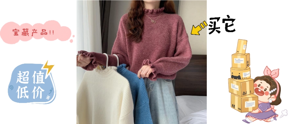 秋冬新款加厚木耳边灯笼袖百搭宽松毛衣女花边打底衫保暖长袖上衣
