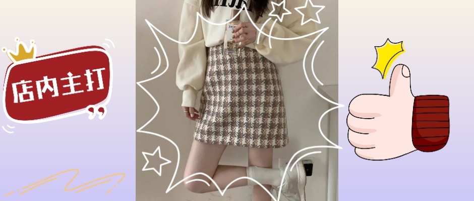 千鸟格毛呢半身裙女2023秋冬新款大码高腰短裙法式显瘦包臀A字裙