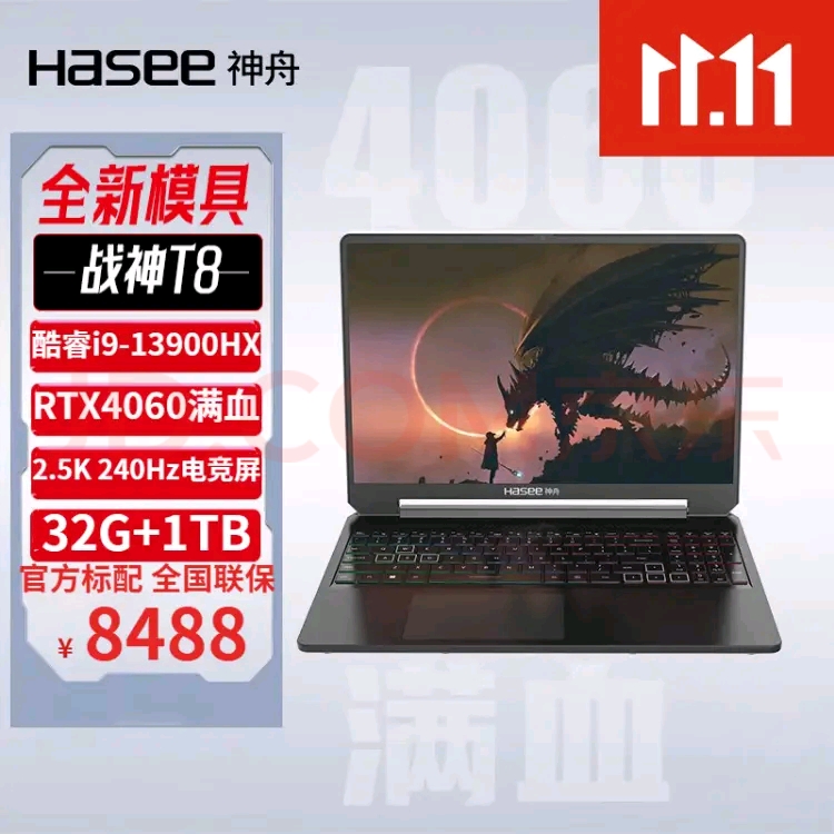 神舟 战神Z8系列英特尔酷睿处理器RTX4060 8G独显游戏本学生办公设计师吃鸡15.6英寸笔记本电脑 Z8D6进阶版:i7/16G/1TB/2.5K