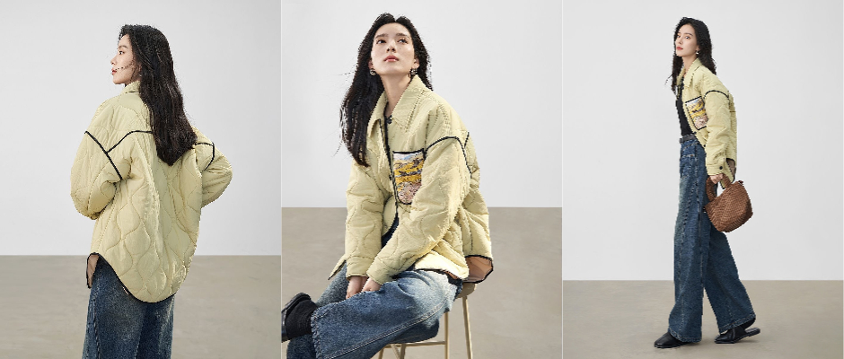 对白X凯伊莱文联名轻薄衬衫式棉服女2023冬装新款简约休闲风外套