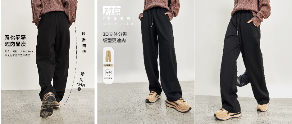 对白复古时尚黑色香蕉裤女冬新款2022年宽松百搭加厚针织休闲裤