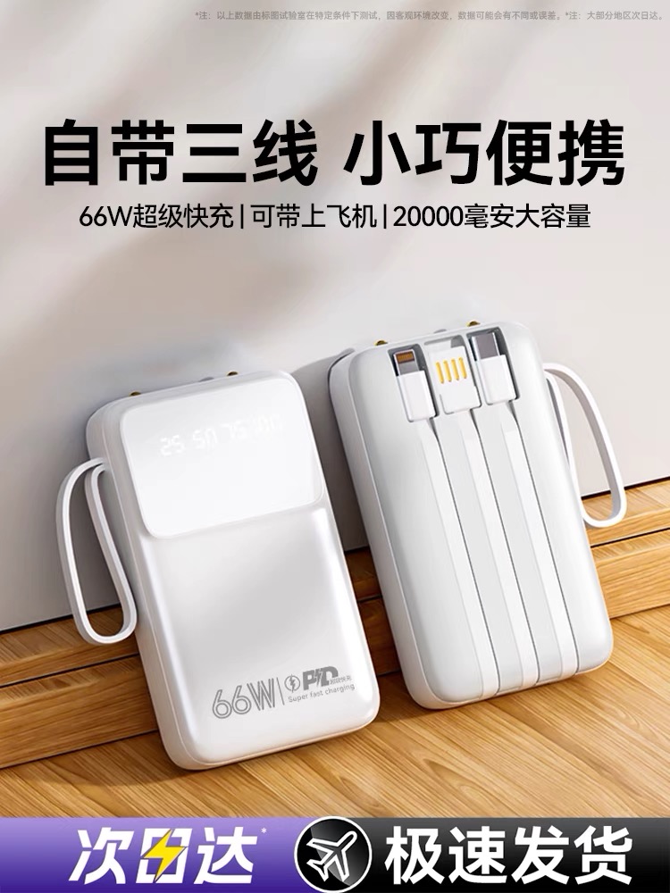 官方正品充电宝超大容量自带三线高端20000毫安便携式66W超级快充适用苹果手机专用移动电源