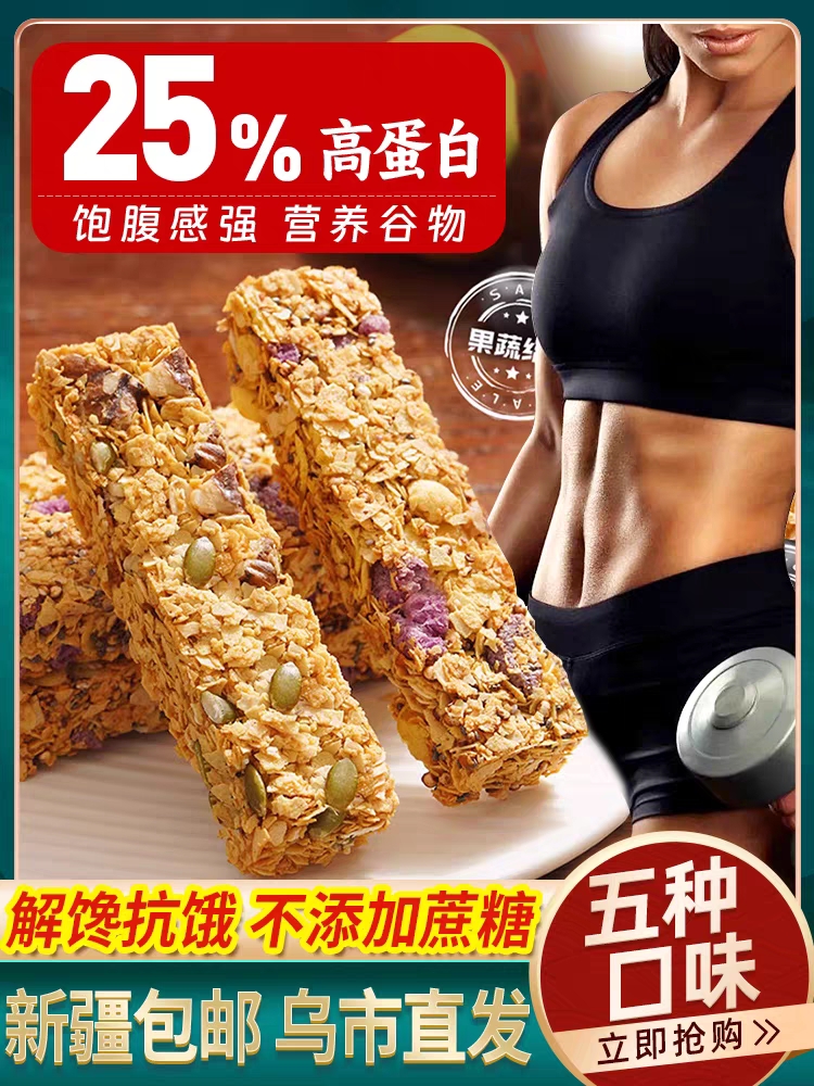高蛋白谷物燕麦减低0无糖精脂肪饱腹能量棒代餐棒