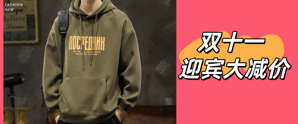 森马集团美式连帽卫衣男秋冬加绒加厚380克重磅纯棉休闲宽松外套