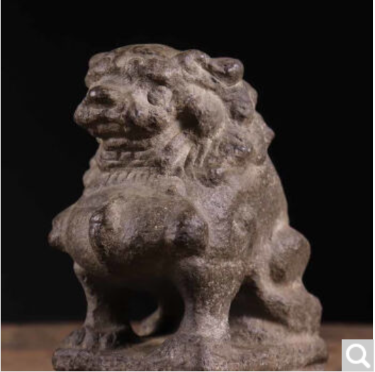 山西青石整石雕刻正脸狮子中堂狮子案头桌面摆件古董古玩收藏复古