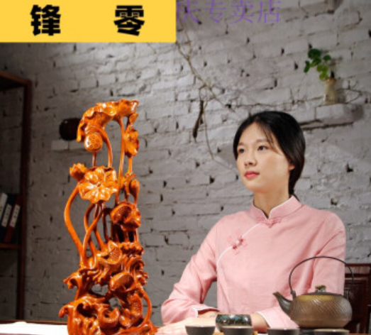 根雕摆件 摆件大型 崖柏根雕摆件 根雕艺术品 花梨木雕刻年年有鱼根雕荷花动物摆件红木家居装饰工艺 精雕年年有鱼【高为22cm】