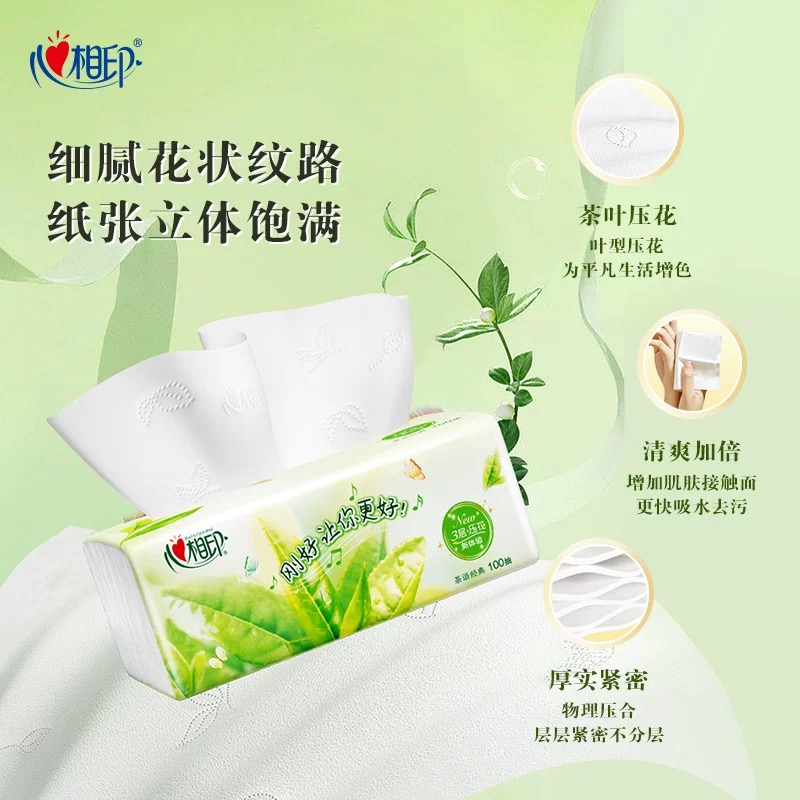 心相印茶香抽纸纸巾家用实惠装抽纸整箱100抽24包擦手纸卫生纸