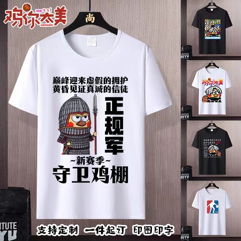 蔡徐坤IKUN小黑子表情包鸡你太美短袖T恤男女可爱鸡篮球上衣半袖