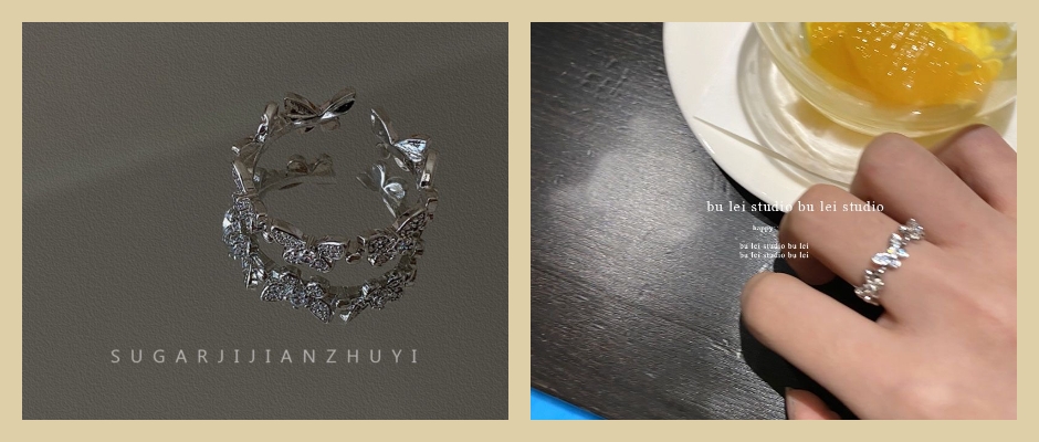 ins超仙锆石开口可调节蝴蝶戒指女网红气质小众设计食指环高级感 多蝴蝶戒指 银色