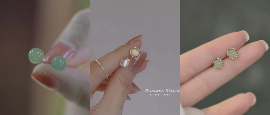 新中式~淡绿色 睡觉不用摘的耳钉女纯银耳饰爆款网红2023耳环小众 圆 白色