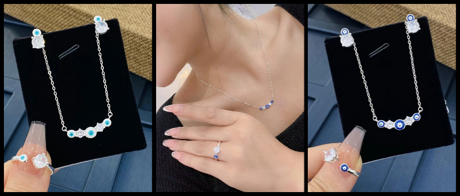 纯银镶嵌蓝眼睛套装 蓝色纯银套装