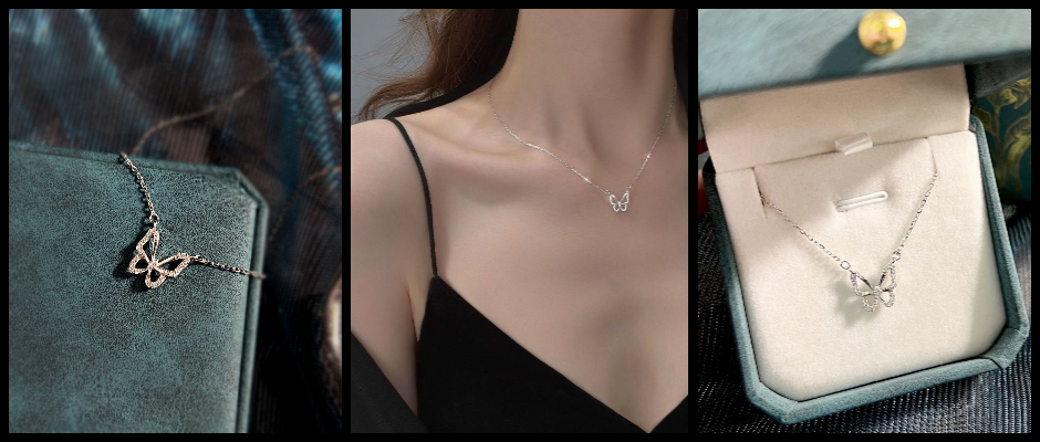 纯银空闪钻蝴蝶锁骨项链 纯银空闪钻蝴蝶锁骨项链