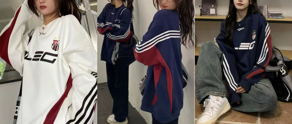美式复古街头复古赛车风三条杠拼接圆领加绒高级感卫衣女秋冬新款 卫衣 白色 XL