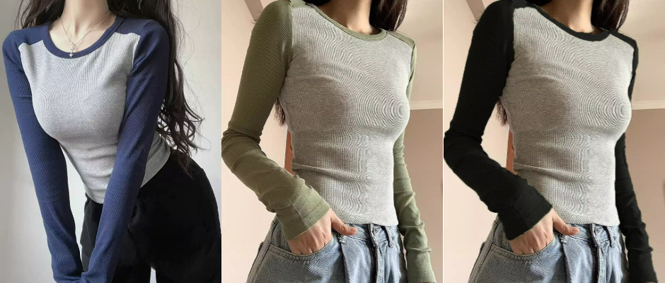 正肩长袖T恤女撞色复古洋气内搭上衣2023秋季新款螺纹修身打底衫 浅绿色 xl
