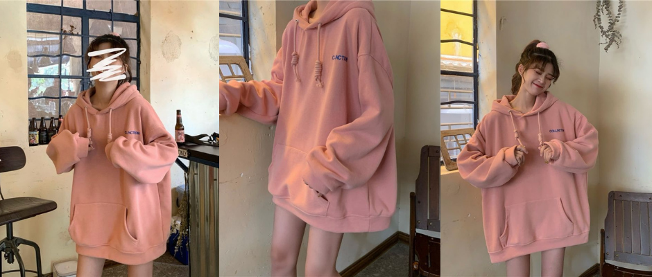 oversize粉色连帽加绒卫衣女款秋冬季宽松百搭bf慵懒风外套上衣服j 粉色 XL