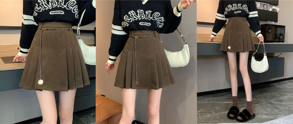 咖啡色毛呢半身裙女秋冬小个子百褶短裙2022新款设计感高腰a字裙 咖啡色 S