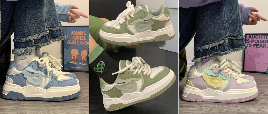 LKJD国潮小众爱心厚底滑板面包鞋女泫雅风百搭chic学生休闲运动鞋 黑色 36