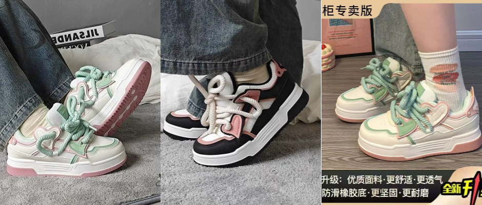 PD多巴胺爱心小白鞋女2023新款百搭小香风透气鞋子女学生休闲板鞋 黑色 36