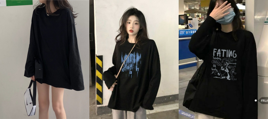 100%纯棉百搭宽松长袖印花打底衫春秋季oversize黑色t恤上衣 黄色 L
