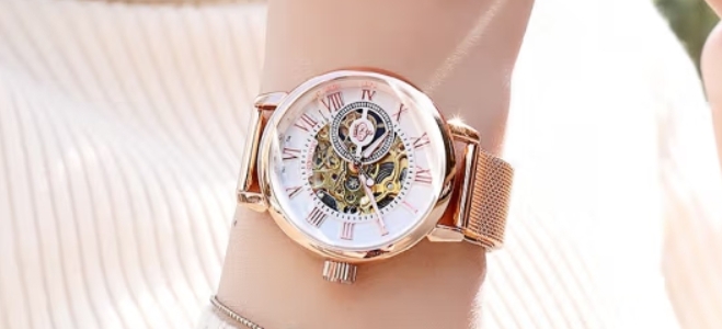欧绮娜(MG.ORKINA MG)手表女士时尚自动机械表飞轮简约腕表情人节生日送女友礼物 玫壳白面米兰带