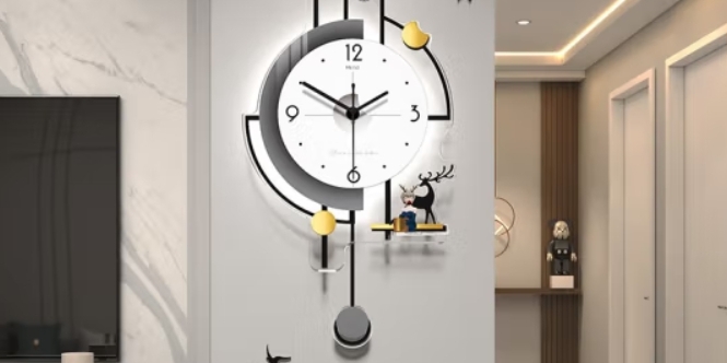 静音挂钟客厅大气2023新款钟表餐厅家用简约现代创意时钟壁灯挂墙