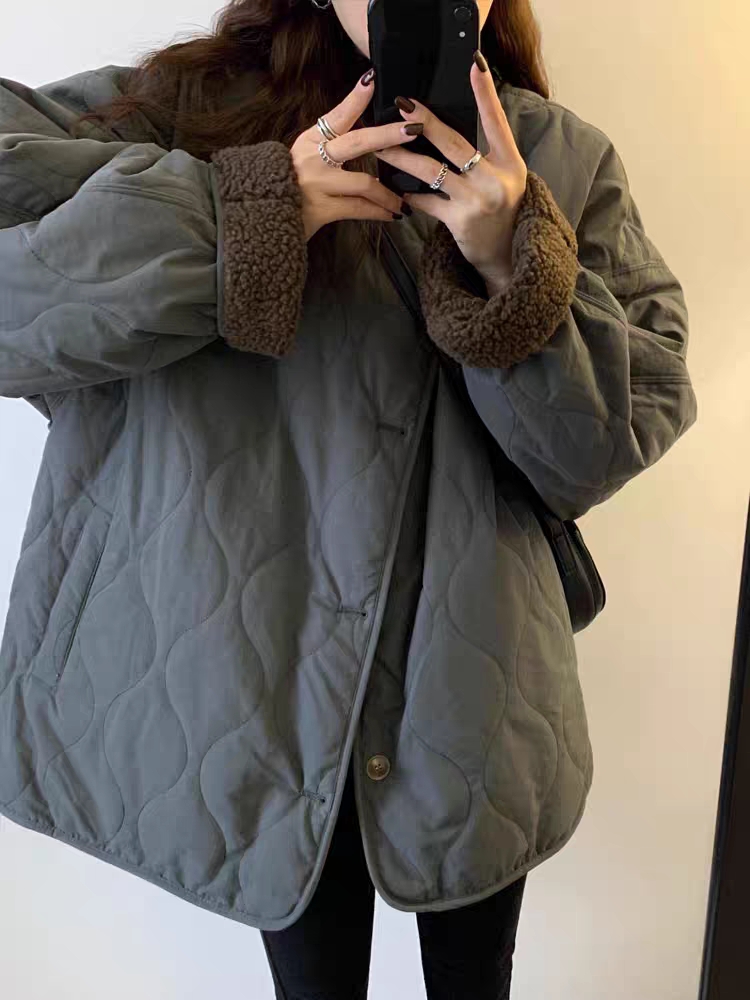 羊羔毛棉服女秋冬季小个子大码宽松百搭两面穿加厚棉衣棉袄短外套