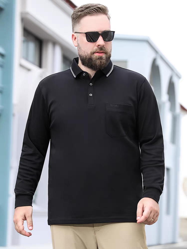百胜狐大码polo衫男长袖t恤秋季加肥加大宽松胖子卫衣男士上衣装
