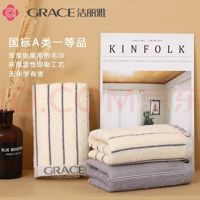 这款毛巾是纯棉的面料。材质很舒适,很柔软,亲肤。摸着很柔滑,而且很厚实,不掉毛,吸水性也很强,很好。简约,时尚,大方,高颜值。
