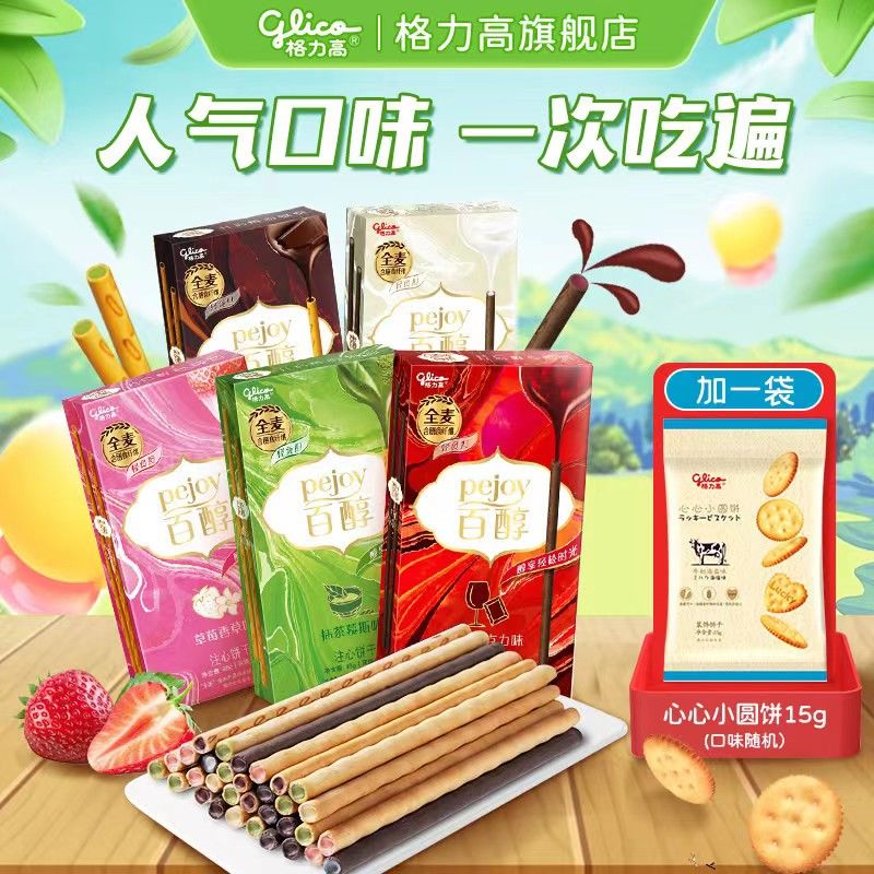 格力高百醇5盒加心心小圆饼巧克力抹茶味注心饼干棒休闲零食礼物