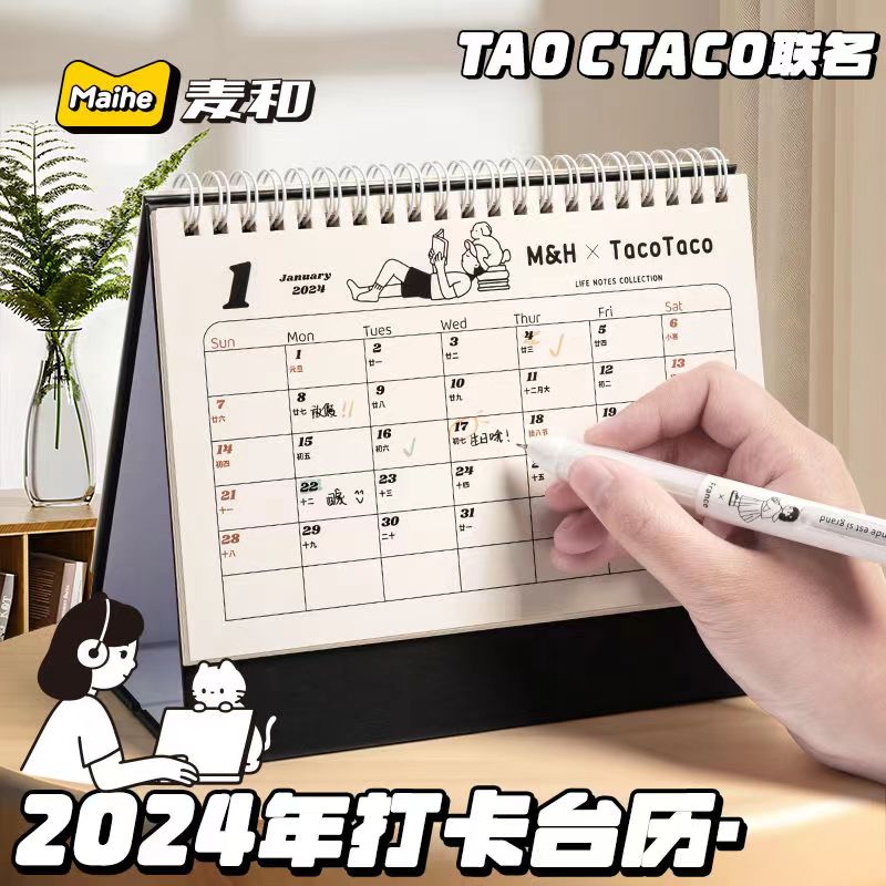 2023年热卖tacotaco联名2024年台历新款办公室桌面摆件可爱卡通月历简约ins