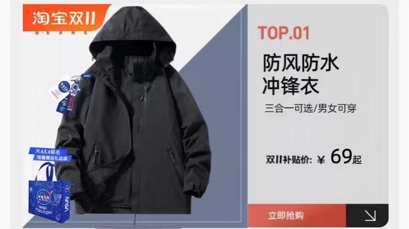 多袋港风宽松大码户外防水冲锋衣加绒外套