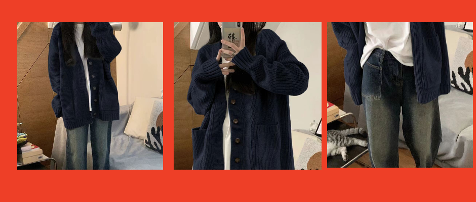 日系复古慵懒风毛衣外套女秋冬款2023新款藏蓝色针织开衫上衣冬季 蓝色 L