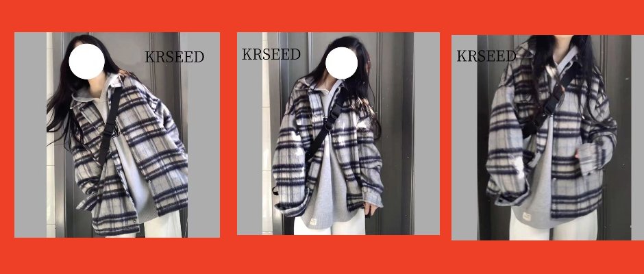 KRSEED美式复古国潮格子毛呢外套女春秋新款oversize宽松百搭上衣 灰色 L