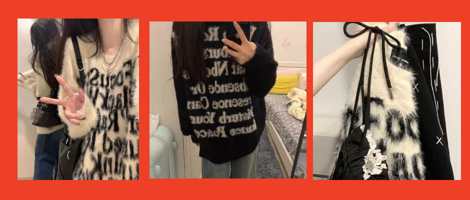 宽松慵懒风长袖针织衫女2023年秋冬新款韩版休闲百搭字母保暖毛衣 黑色 L