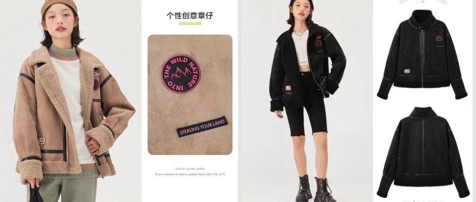 冬季新款仿麂皮仿羊羔毛立领拼接夹克甜酷小众外套女 黑色 S